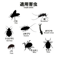 ハエ、蚊、ゴキブリ、ノミ、トコジラミ(ナンキンムシ)、イエダニ、蚊幼虫(ボウフラ) |