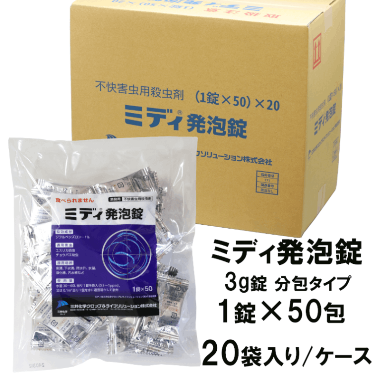 殺虫剤 ミディ発泡錠 1% 分包タイプ(3g x 50錠入)×20袋/ケース販売 脱皮阻害型 殺虫剤 ユスリカ チョウバエ デミリン後継品 送料無料
